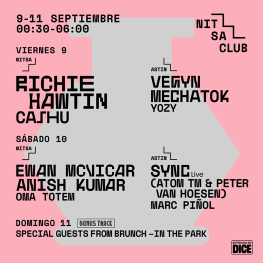Los ritmos urbanos de Vegyn, el espíritu ravero de Ewan McVicar, la fusión de Atom™ y Peter Van Hoesen en el dúo SYNC y el retorno del gran Richie Hawtin.