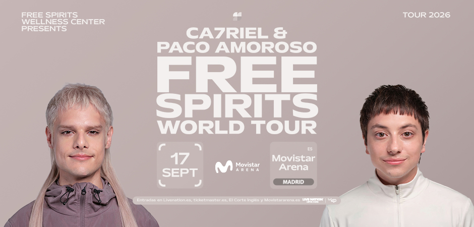 Ca7riel 6 Paco Amoroso vuelven al Movistar Arena presentando nuevo disco y gira: Free Spirits. Si no estuviste en la última, no te pierdas esta nueva cita, en la que los argentinos seguro que volverán a sorprender a todos.