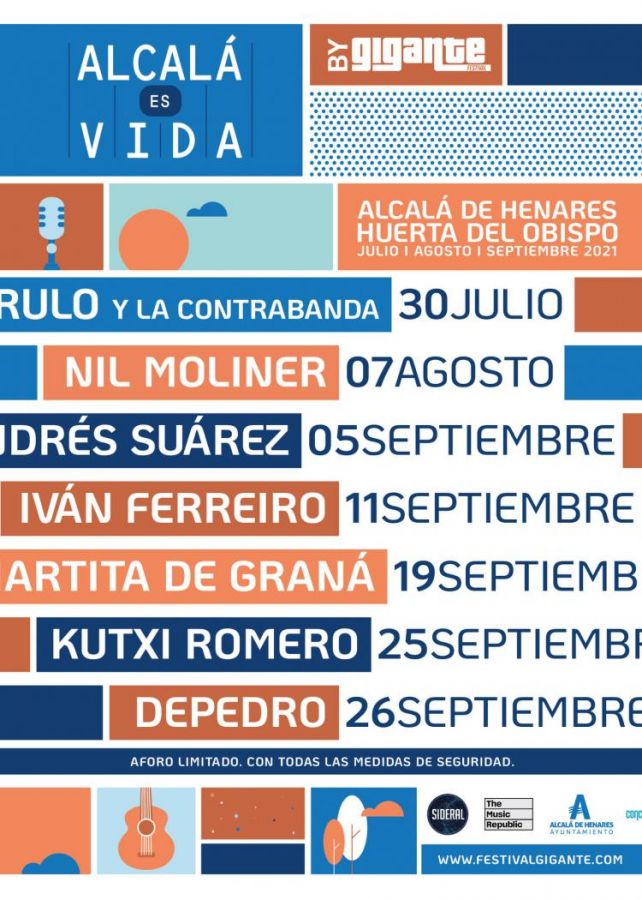 El proyecto musical de Jairo Zavala, Depedro, pasará por la Huerta de Obispo este septiembre dentro del nuevo festival Alcalá es Vida 2021. ¡Entradas ya a la venta!Desde el festival Gigante han anunciado un nuevo ciclo de conciertos para finales de verano del año 2021 llamado Alcalá es Vida. Con actuaciones adaptadas a la nueva normalidad en un gran espacio al aire libre como es la Huerta del Obispo, con distancia de seguridad, aforo limitado.