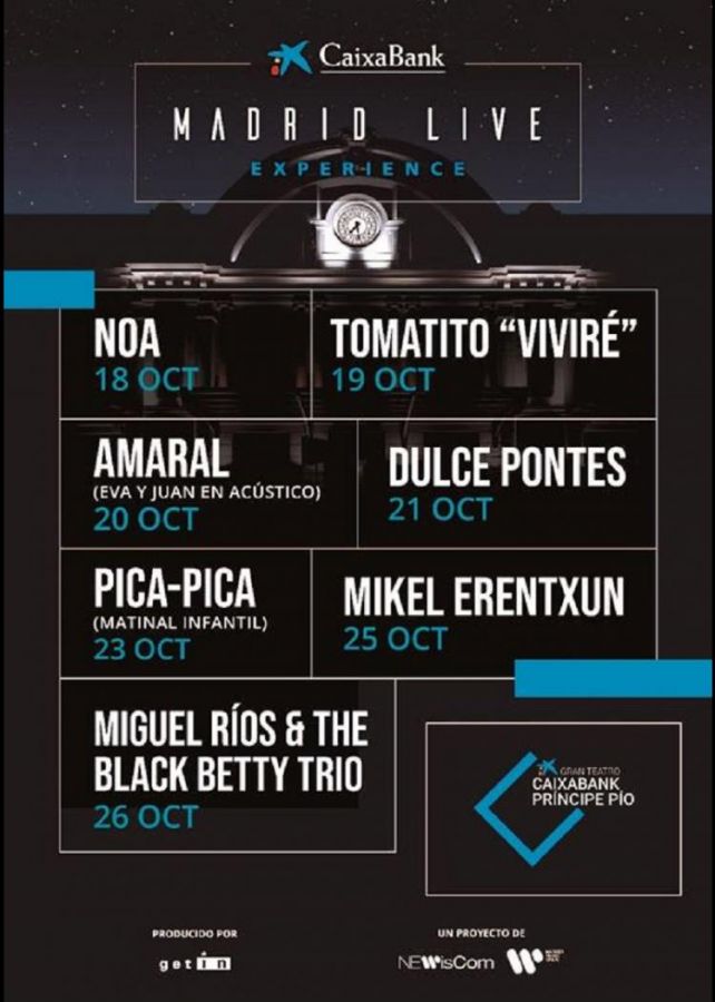 Madrid Live Experience es un nuevo ciclo de conciertos que tendrá lugar en la capital durante el mes de octubre. Será en el Gran Teatro Caixabank Príncipe Pío que tiene un amplio aforo de hasta 2000 personas.