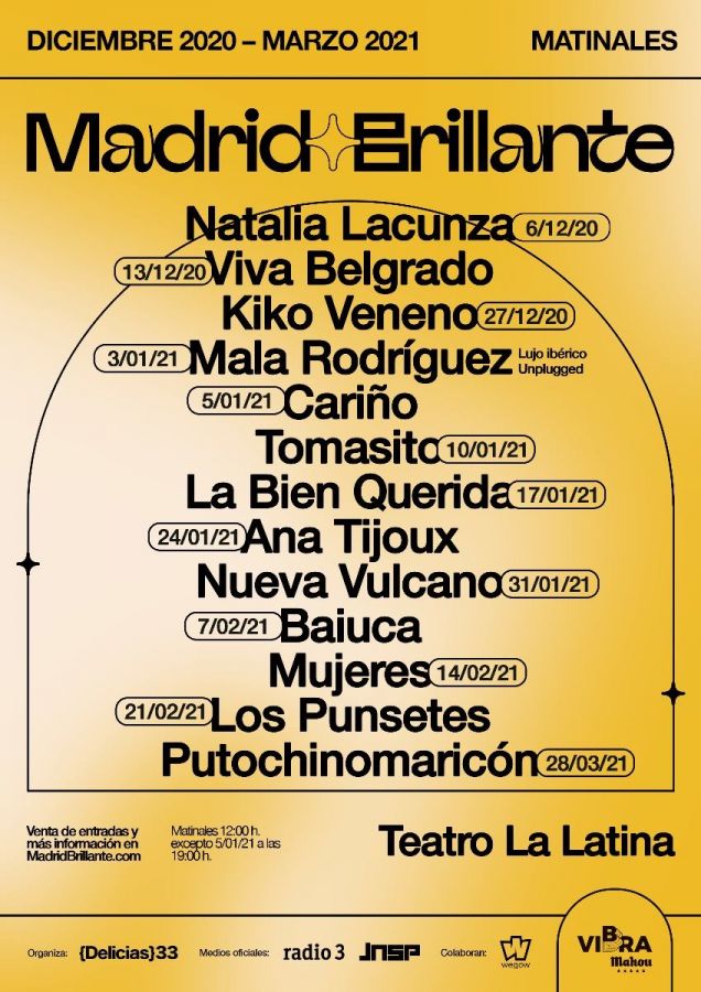 Desde diciembre del año 2020 hasta marzo del año 2021 en el Teatro La Latina de Madrid se organizará un festival de música llamado Madrid Brillante. Serán actuaciones matinales en plena hora de vermú y con todas las medidas necesarias impuestas por la situación y el gobierno.