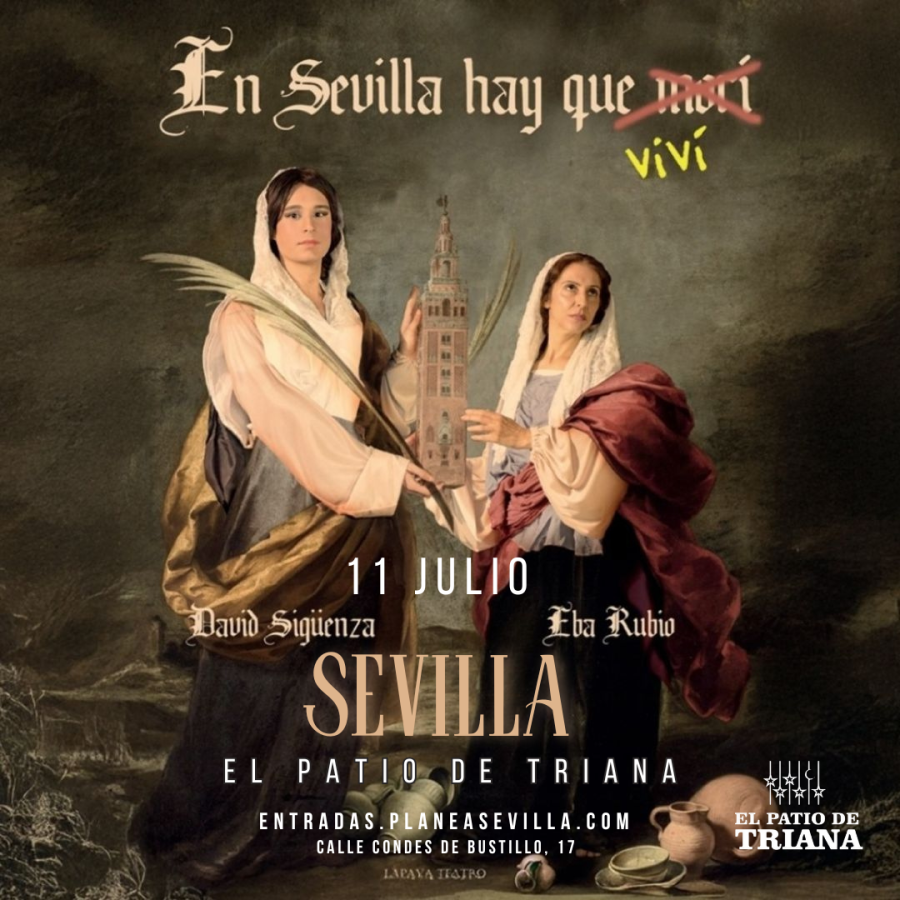El evento se realiza en El Patio de Triana (C/ Condes de Bustillo, 17)Casi dos mil años después de ser martirizadas, Santa Justa y Santa Rufina vuelven decididas a reclamar lo que es suyo: más protagonismo y reconocimiento en Sevilla. Se sienten ninguneadas y quieren salir en procesión en La Madrugá. ¿Cómo lo lograrán? Con crowdfunding, una petición al Vaticano y mucho humor. Esta absurda e hilarante comedia nos muestra a dos santas que, viajando a través del tiempo, empatizan con el mundo contemporáneo y adaptan su mensaje según el lugar y el público, todo para lograr su original petición.