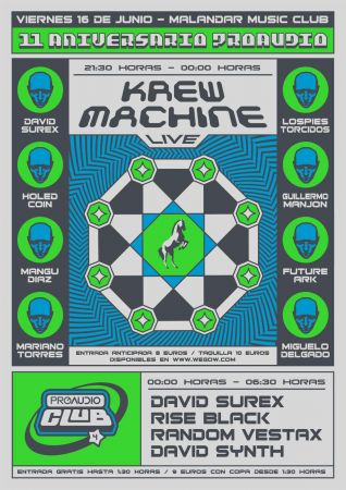 Proaudio Escuela celebra su undécimo aniversario con una noche completa de concierto y club. Para el concierto contaremos con KREWMACHINE.